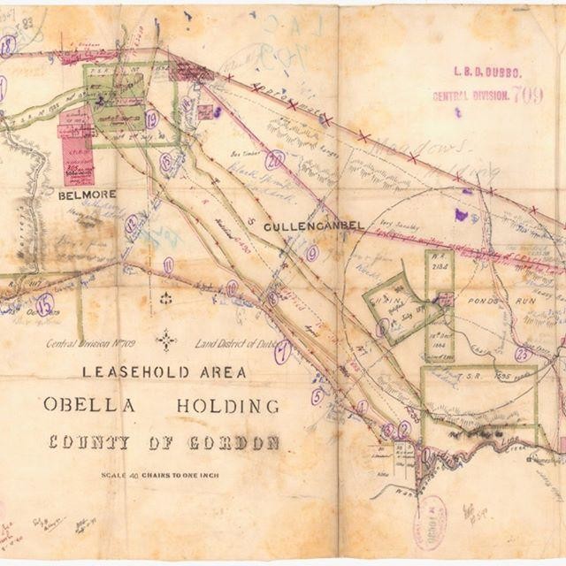This is an example of a pastoral leasehold run. It's the Obella Holding [NRS-8352 lease #709] which was situated south of Dubbo, part of the Central Land Division.