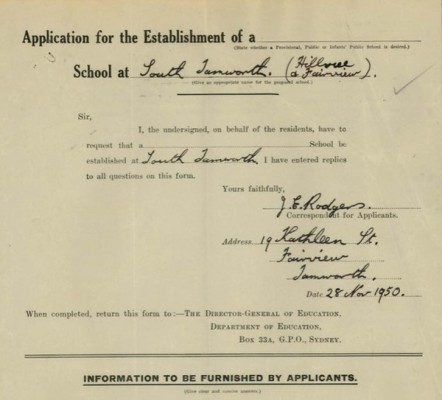 20th century increases in population saw kindergarten age children refused enrolment until additional classes were established; new public schools, including near Woolomol Housing Settlement, and a new high school (standard for 1,000 students) established. Hostels to provide accommodation for students from outside Tamworth operated.