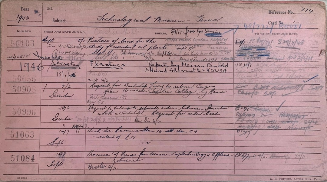 The Miscellaneous files were managed by the Department of Education using a series of index cards arranged by reference number. Each reference number represents a unique subject or topic. For example, readers interested in the Technological Museum, later known as the Museum of Applied Arts and Sciences and now the Powerhouse Museum, can read index card reference number 774 to find a list of related correspondence. Recently, a team of archivists were tasked with identifying each reference number to help facilitate access to these 781 boxes of records.
