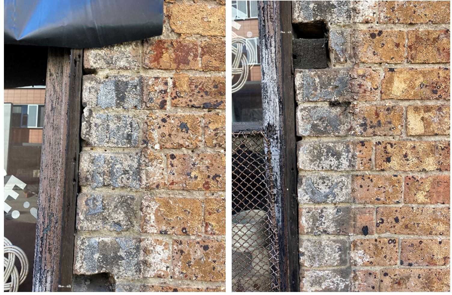 The temporary removal of a timber frame around the western shop window also revealed remnants of 19th-century signage painted directly onto the brickwork.