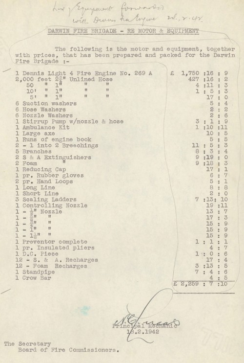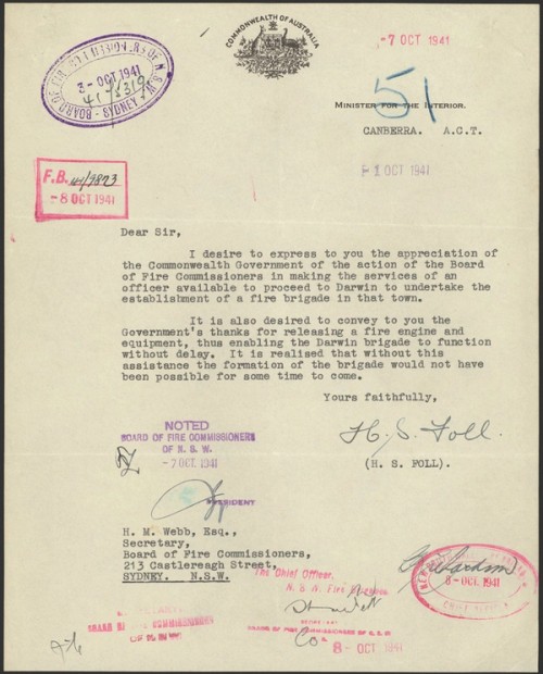 - NAA RecordSearch – NAA:A431, 1948/215, Fire Brigade Darwin N.T. Establishment of, 1938-50