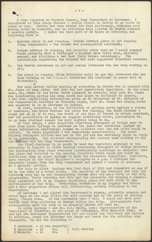Before deciding on the route for the all-weather road from Darwin to Adelaide River, the NSW Dept of Main Roads commissioned Adstra Airways of Mascot, Sydney to photograph the area between Adelaide River and Warlock, some 800 square miles or 207,199 hectares. This aerial survey was needed to quickly find the best route for the road across the rivers and creeks in the area. Based at Pine Creek aerodrome, pilot Norman Rodini and cameraman Peter Paynes photographed the area from 17 June to 7 July 1941.