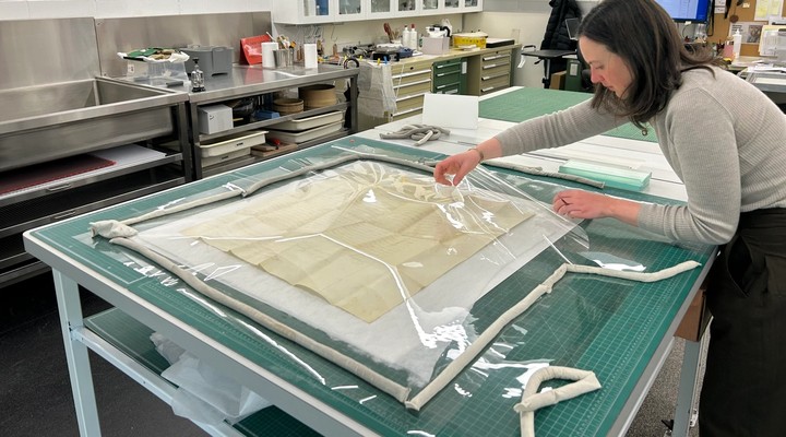 The conservators at the Western Sydney Records Centre treat items from across Museums of History NSW collections. A recent example is the 1832 absolute pardon of convict Samuel Henry Horne